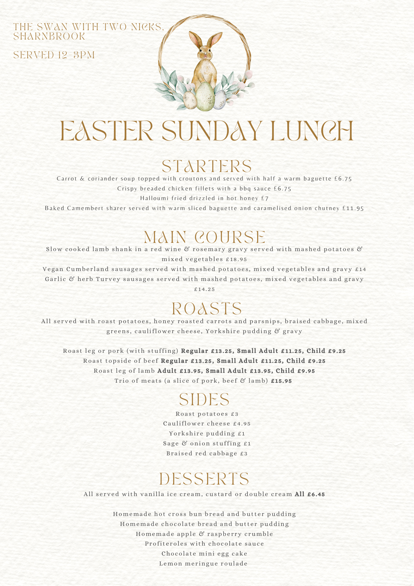 •Choose any 3 items off the starters or sides. Excluding baked camembert sharer